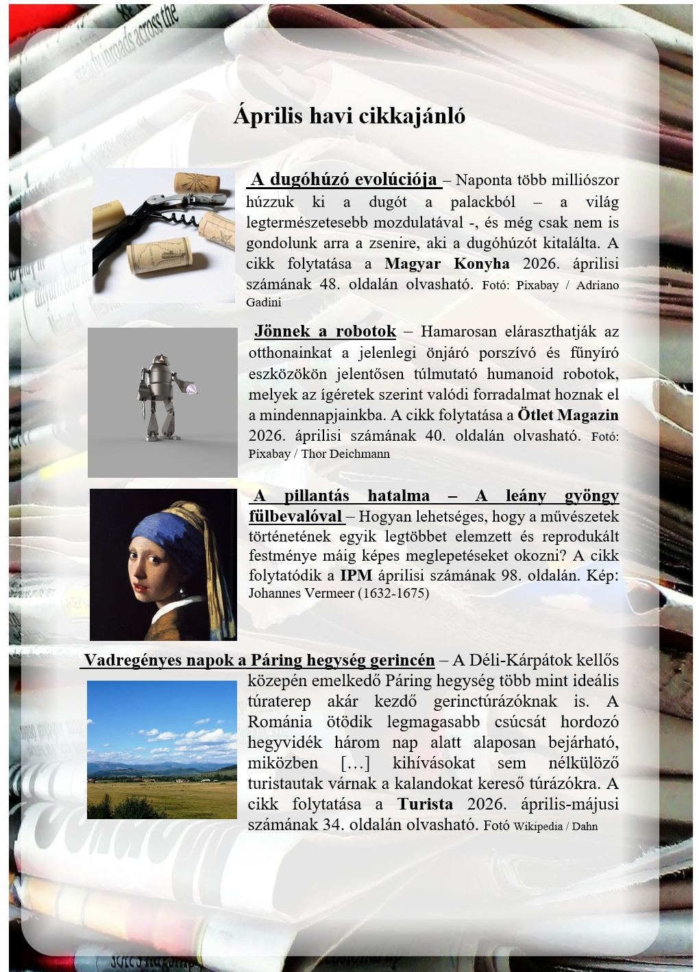 Áprilisi cikkajánló